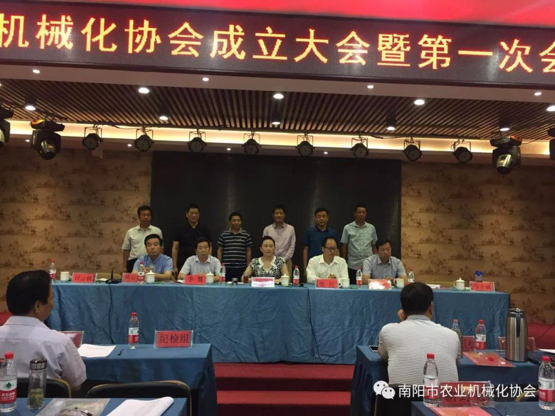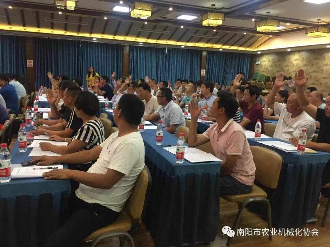 7月3日,南陽市農(nóng)業(yè)機(jī)械化協(xié)會成立大會在南陽市鷗凱印象酒店3樓會議室召開,南陽市農(nóng)業(yè)機(jī)械化管理局黨組書記、局長劉勤同志出席會議并做重要講話。選舉通過田云鎖(原南陽市農(nóng)業(yè)機(jī)械公司總經(jīng)理)同志當(dāng)選為會長,亞澳南陽農(nóng)機(jī)有限責(zé)任公司總經(jīng)理史炳哲、南陽奇豐機(jī)械有限責(zé)任公司董事長趙順奇、鎮(zhèn)平縣糧豐農(nóng)機(jī)農(nóng)民專業(yè)合作社理事長薛云濤當(dāng)選為副會長。