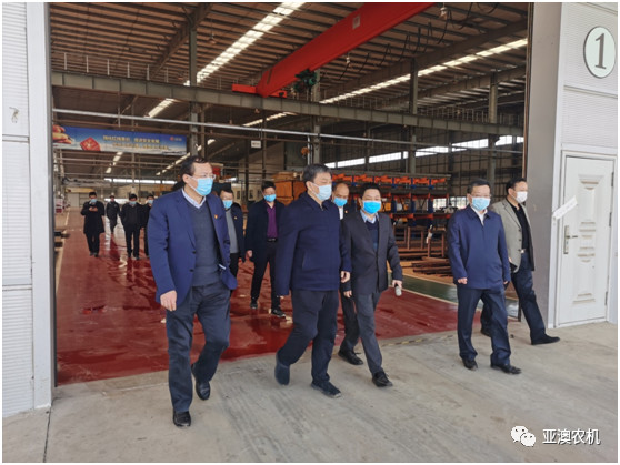 霍好勝一行在亞澳農(nóng)機調(diào)研與公司總經(jīng)理史炳哲進行深入交流,詳細了解疫情防控、復(fù)工進度和遇到的困難等問題,并深入生產(chǎn)區(qū)一線現(xiàn)場查看企業(yè)的生產(chǎn)狀況。