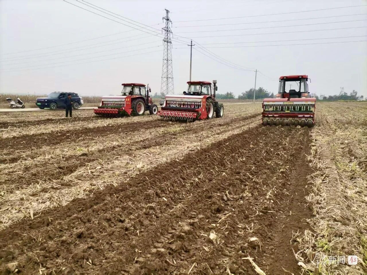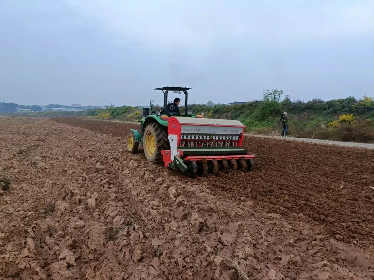 在百公里外的銅川市耀州區(qū)小丘鎮(zhèn)中原村,亞澳農(nóng)機(jī)同樣成為搶種主力。“播種期推遲了近十天,土壤又濕,最怕播深不均和倒伏。”農(nóng)機(jī)手操控著亞澳寬幅溝播機(jī)穿梭田間,機(jī)具搭載的指夾式排種器實(shí)現(xiàn)精準(zhǔn)下種,配合可調(diào)節(jié)播深系統(tǒng),將播種深度嚴(yán)格控制在2—4cm的最佳范圍,既滿足銅川市農(nóng)機(jī)推廣站副站長姚關(guān)盈提出的“淺播搶積溫”要求,又通過均勻播種避免了“播量過大易倒伏”的風(fēng)險(xiǎn)。截至目前,銅川市已調(diào)度1600余臺套農(nóng)機(jī)投入秋播,亞澳機(jī)具憑借“旋耕、播種、施肥一體化”優(yōu)勢,大幅提升了濕墑地塊的作業(yè)效率,助力農(nóng)戶把延誤的農(nóng)時(shí)搶回來。
