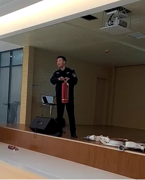 活動分兩部分進行:第一部分有王教官針對防火安全知識,結合案例介紹,培訓大家對日常工作安全的應急預案、隱患防護方法及應對措施;第二部分通過現(xiàn)場防火安全演練,教育大家正確使用防火器材,同時對日常的安全隱患檢查、排除指導。