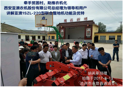 為支持西部貧困地區(qū)農(nóng)機(jī)化發(fā)展,2017年6月13日,中國(guó)農(nóng)業(yè)機(jī)械化協(xié)會(huì)聯(lián)合西安亞澳、甘肅福祥等五家國(guó)內(nèi)知名農(nóng)機(jī)裝備企業(yè)為甘肅省永登縣通遠(yuǎn)鄉(xiāng)團(tuán)莊村捐贈(zèng)了價(jià)值約50萬元的農(nóng)機(jī)產(chǎn)品和現(xiàn)金。