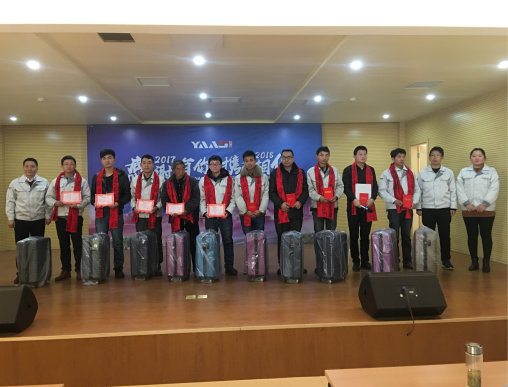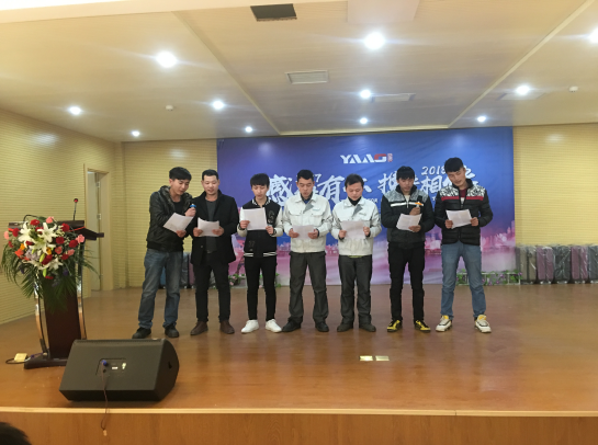 年會(huì)初始,總經(jīng)理史炳哲致新年賀詞,并做了2017年年度總結(jié),宣讀了2018年度規(guī)劃。對(duì)亞澳全體員工在過去一年中做出的努力和奉獻(xiàn)給予了充分的肯定和贊揚(yáng)。接著由生產(chǎn)主管王紅衛(wèi)和質(zhì)檢作業(yè)長(zhǎng)朱謹(jǐn)超分別為我們作了2017年工作總結(jié)及涂裝質(zhì)量問題分析。最后由總經(jīng)辦郭靖特助宣讀了2017年度表彰決定,對(duì)優(yōu)秀員工,優(yōu)秀班組、市場(chǎng)開發(fā)先鋒、項(xiàng)目申報(bào)、新產(chǎn)品開發(fā)等五個(gè)獎(jiǎng)項(xiàng),共15人進(jìn)行了表彰。
